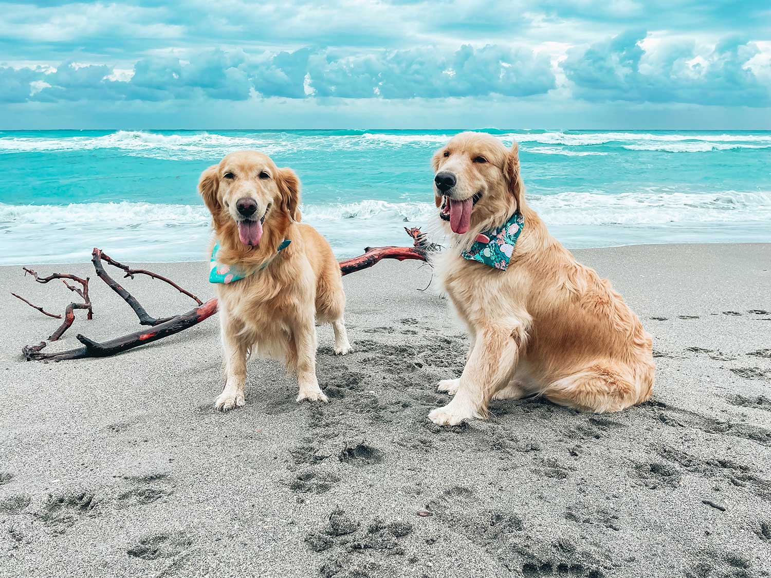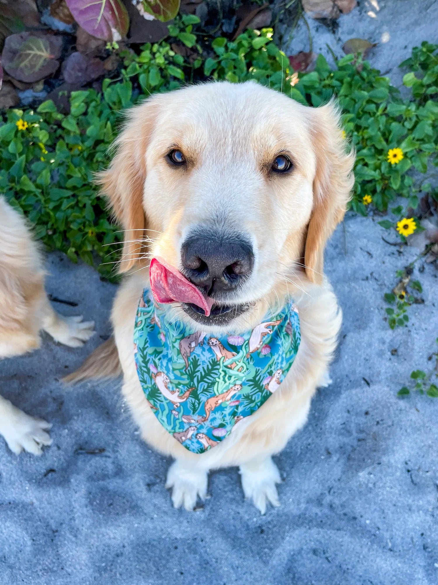 Ferry is our muse and the captain. Her closet started to rival mom's, so Dog Dad (Matt) learned how to print bandanas and Dog Mom (Megan) learned to draw digitally. In July 2020, Ferry Fancy set sail and in 2021, Ipanema joined the crew. We catch a lot of sunrises (and sand) at the beach, but the girls are always looking fresh thanks to the performance fabric. Megan creates. Matt makes.