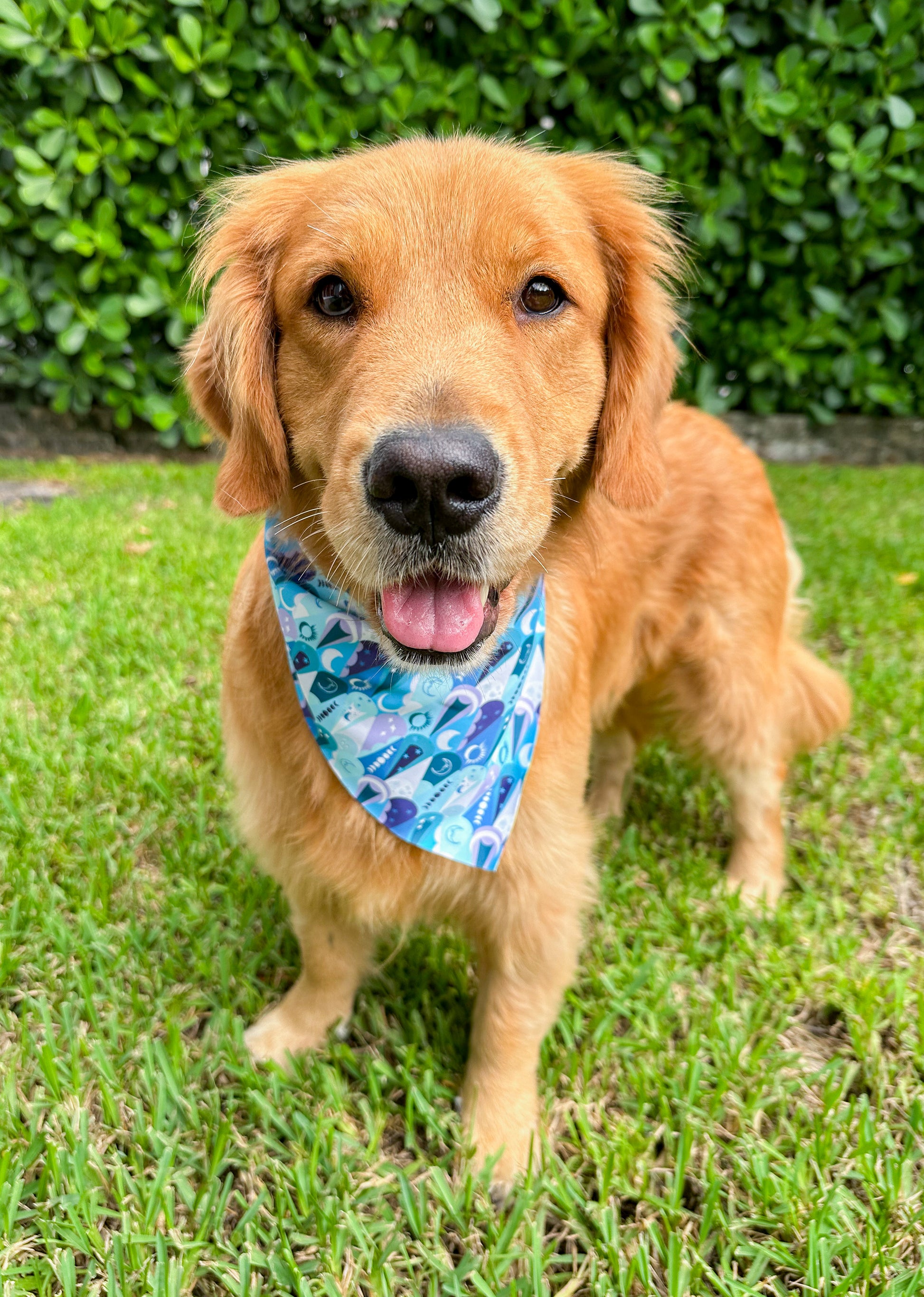 Printed on swimsuit-style material, our custom designs are ready for all your adventures. Water, woods, woolgathering on the couch, they do it all and are easy to wash when the time comes. You can even get them cold and wet to help cool your babies down on those hot summer days. Let your pets get nauti in our bandanas, then rinse and repeat.