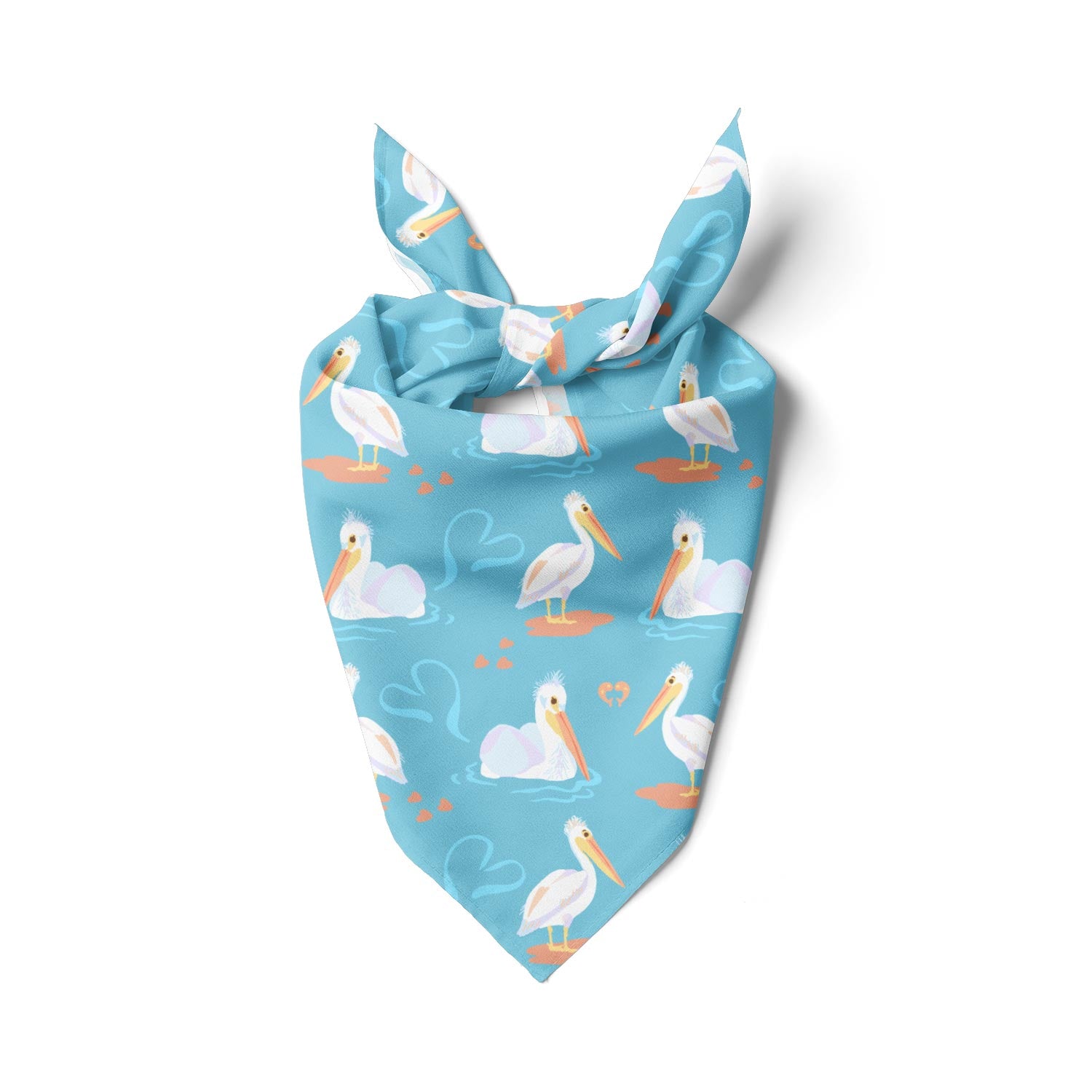 Our Peachy Pelican design needed a buddy. This blue version features white fuzzy pelicans with a subtle heart motif. One side is a slightly darker blue than the other. It looks great by land and by sea.